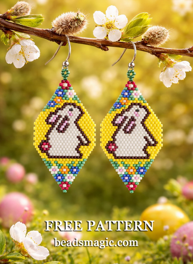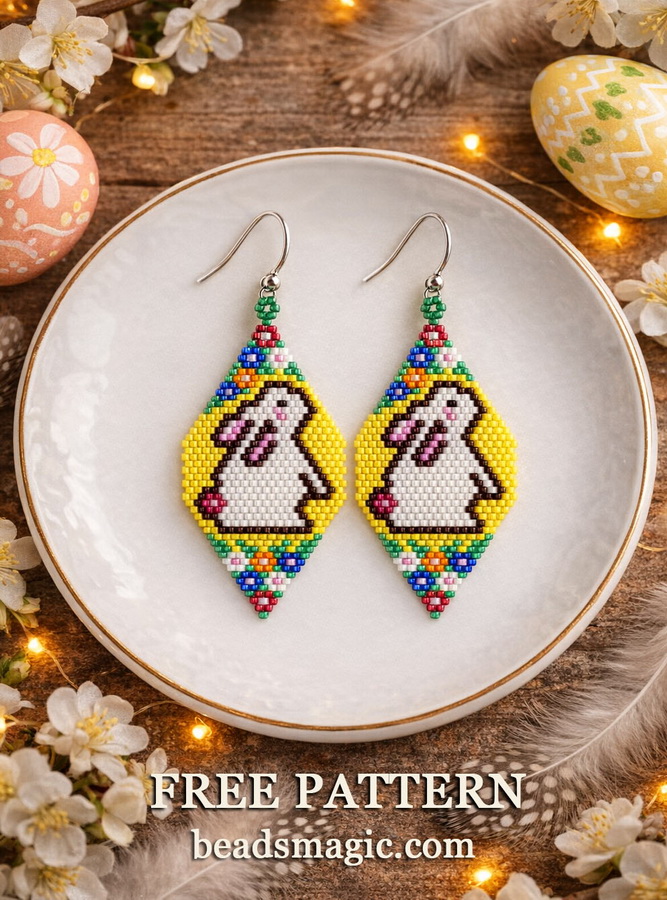 Celebrate the season with these adorable Easter Bunny earrings! This free beading pattern is created using the classic brick stitch technique, making it perfect for both beginners and experienced beaders who enjoy detailed, playful designs.