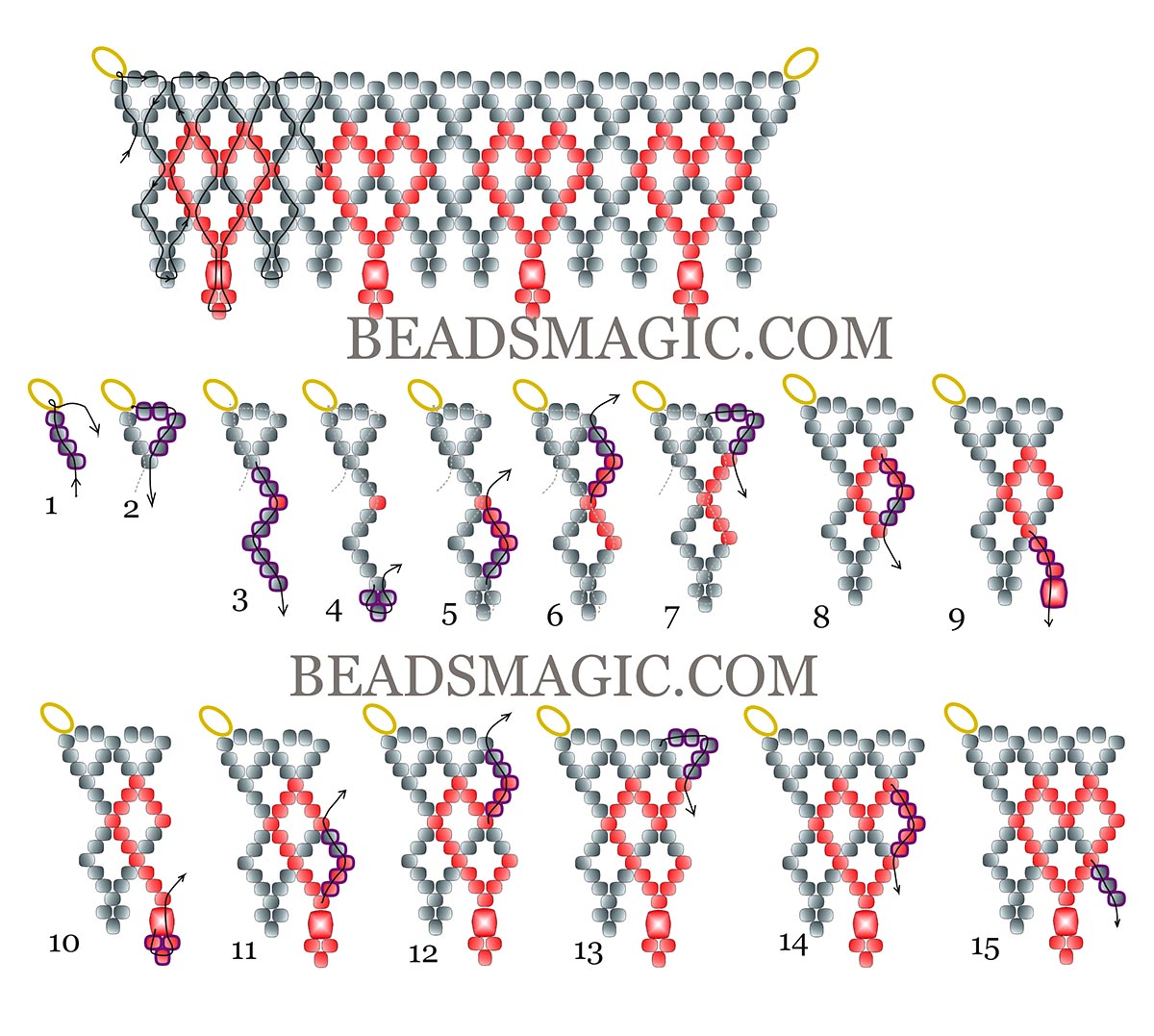 NOTE: We don’t mind if you sell the projects that you make with our patterns, but please mention that you got the pattern from beadsmagic.com.