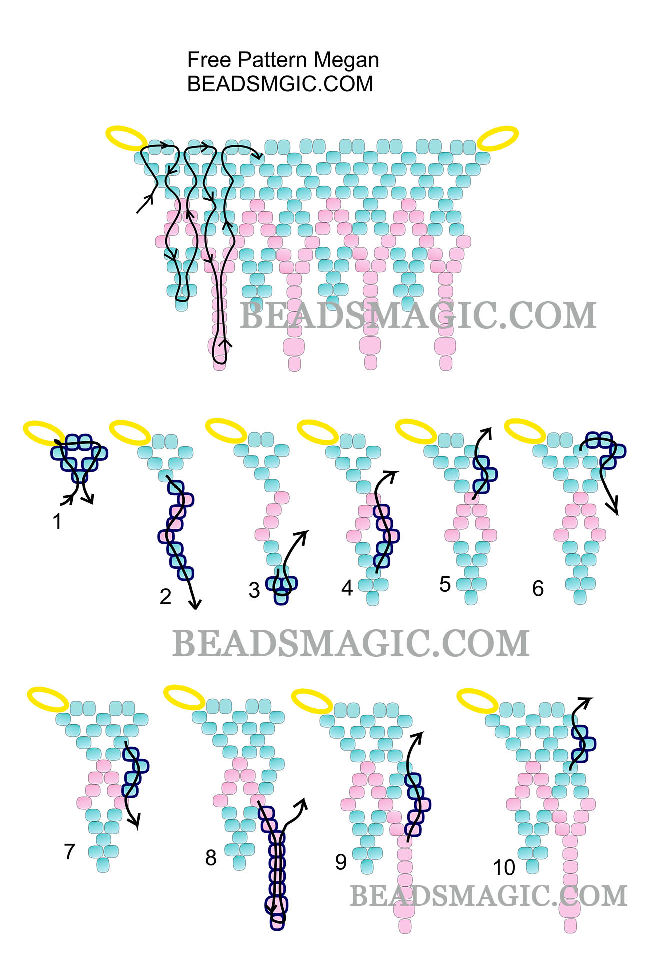 Download the free bead pattern and start your next beading project today. Create your own unique version of the beaded necklace “Megan” and enjoy the beauty of handmade jewelry!