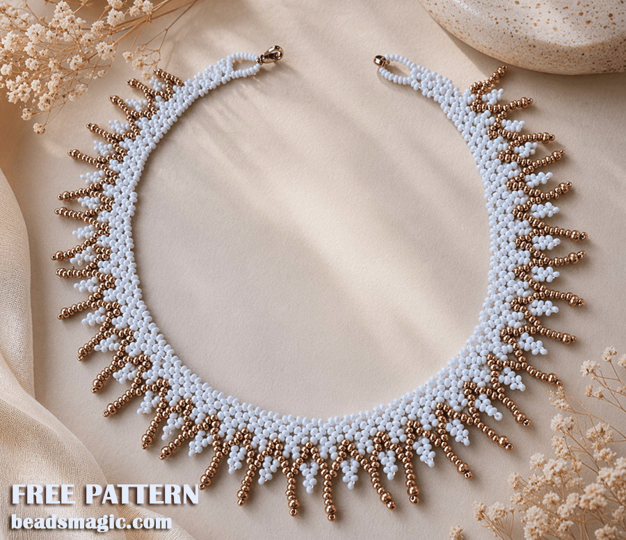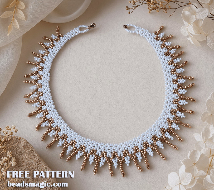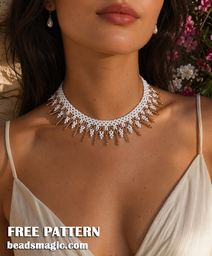 I’m happy to share a free beading pattern for the necklace “Megan”—a stylish and modern design perfect for anyone who loves beadwork, DIY jewelry, and elegant handmade accessories. This necklace features a structured yet delicate pattern created with seed beads, making it a beautiful piece for everyday wear or special occasions.