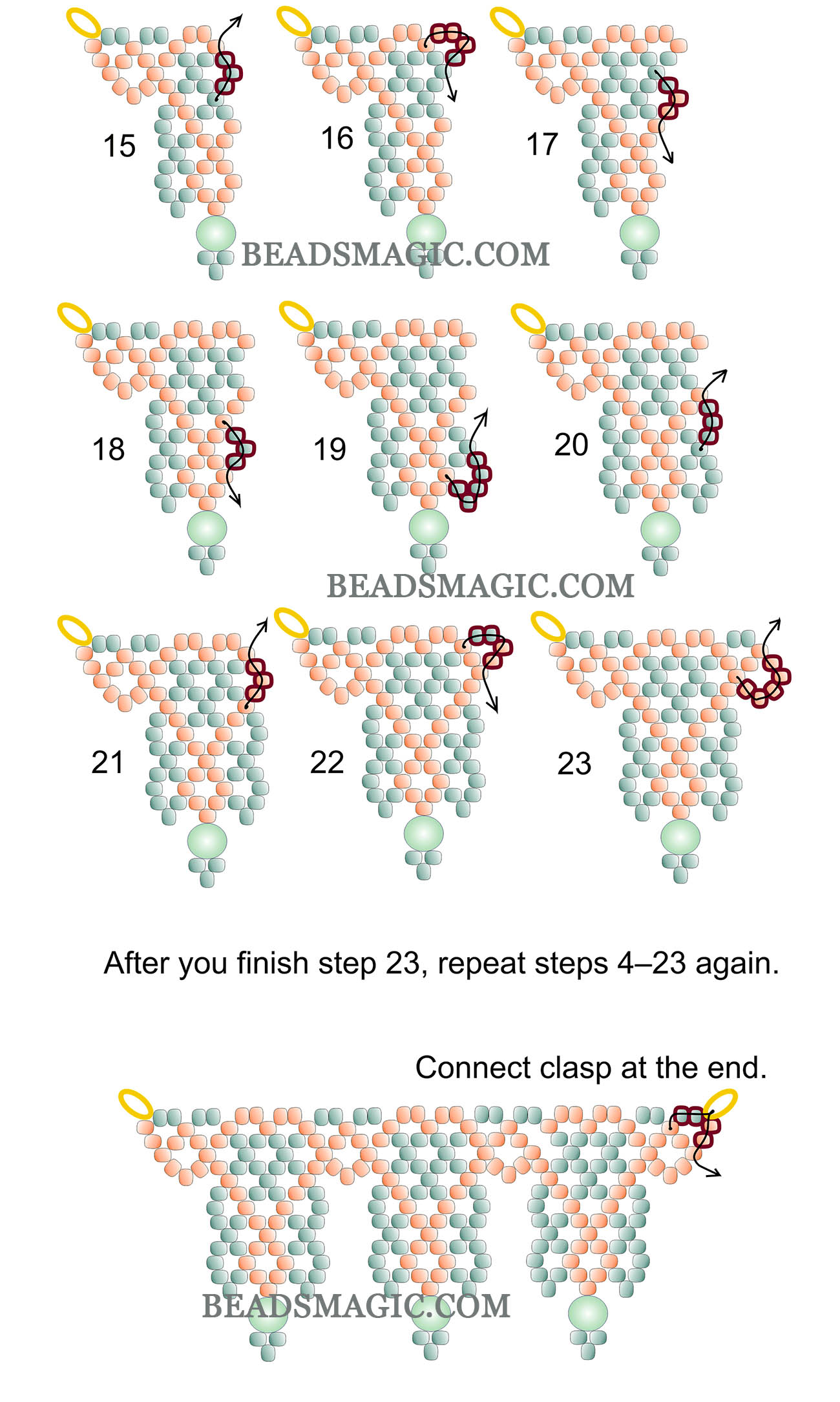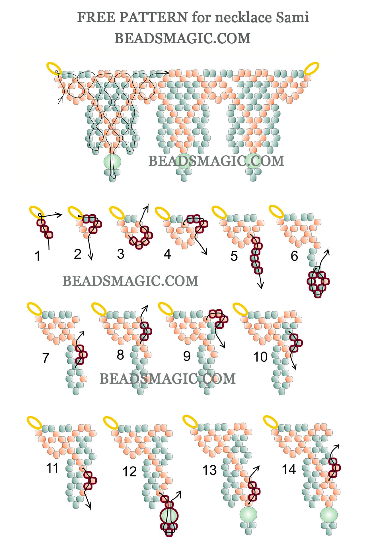 U can download this pattern in pdf format by clicking the pdf button in the end of this post.     Click on the diagram to enlarge it. free beading tutorial, beading tutorial for necklace, beaded necklace pattern, DIY necklace, jewelry making tutorial, beading pattern, handmade jewelry, Sami necklace, necklace Sami, Sami beading tutorial, step-by-step beading instructions, easy beading project, creative jewelry design, beading for beginners, advanced beading techniques, DIY jewelry design, how to make a beaded necklace, creativity, inspiration, self-expression, handmade, unique design free beading tutorial, beading tutorial for necklace, beaded necklace pattern, DIY necklace, jewelry making tutorial, beading pattern, handmade jewelry, Sami necklace, necklace Sami, Sami beading tutorial, step-by-step beading instructions, easy beading project, creative jewelry design, beading for beginners, advanced beading techniques, DIY jewelry design, how to make a beaded necklace, creativity, inspiration, self-expression, handmade, unique design   NOTE: We don’t mind if you sell the projects that you make with our patterns, but please mention that you got the pattern from beadsmagic.com.   Dont forget to share your beaded jewelry in our facebook group – facebook.com/groups/beadsmagicpatterns